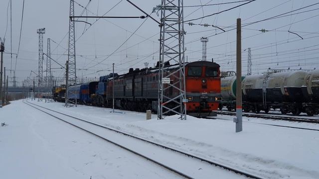 12 января 2022 года в 10:53 станция Жигулёвское Море Куйбышевская железная дорога the sound of diesel 10D100, 2TE10U-0431 with a recovery train at the Zhigulevskoe More station January 12, 2022 at 10:53 am station Zhigulyovskoe More Kuibyshevskaya railway