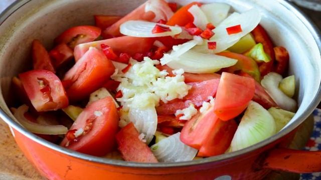 Вкусный овощной салат Тройка на зиму пополнит вашу коллекцию домашних заготовок. Яркий и такой простой в приготовлении. Ингредиенты: Помидоры3 штуки, Перец болгарский3 штуки, Лук репчатый3 штуки, Чеснок3 зубчика, Перец чилиПо вкусу, Сахар30 грамм, Соль15 грамм, Масло растительное100 грамм, Уксус 9%30 грамм, Баклажаны3 штуки, Благодарим за просмотр! Подписывайтесь на канал🍕 Поделитесь своим мнениенм о рецепте в комментариях!