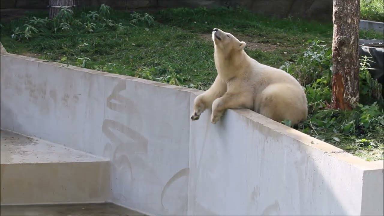 Белая медведица Белка походила на одной стороне вольера, потом перешла на другую.